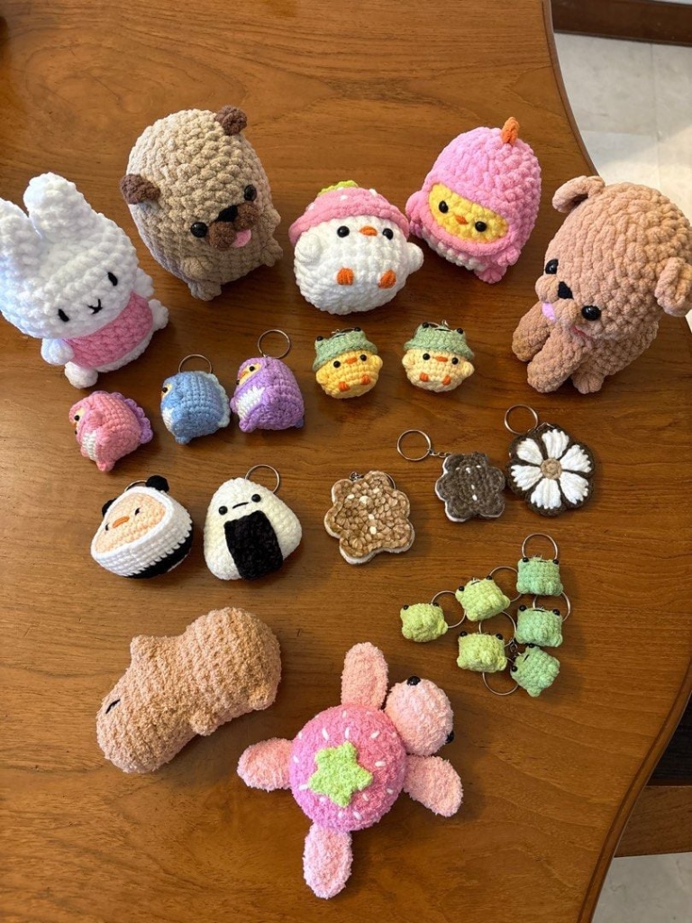 From cuddly amigurumi companions to elegant wearables, every piece is crocheted by hand without the use of standard knitting machines.